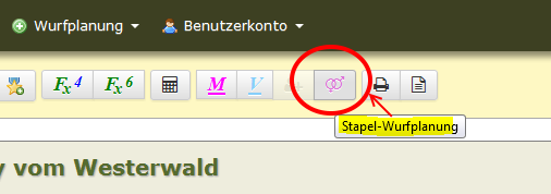 In der Funktionsleiste oberhalb des Pedigees finden Spender und Sponsoren den neuen Button "Stapel-Wurfplanung".